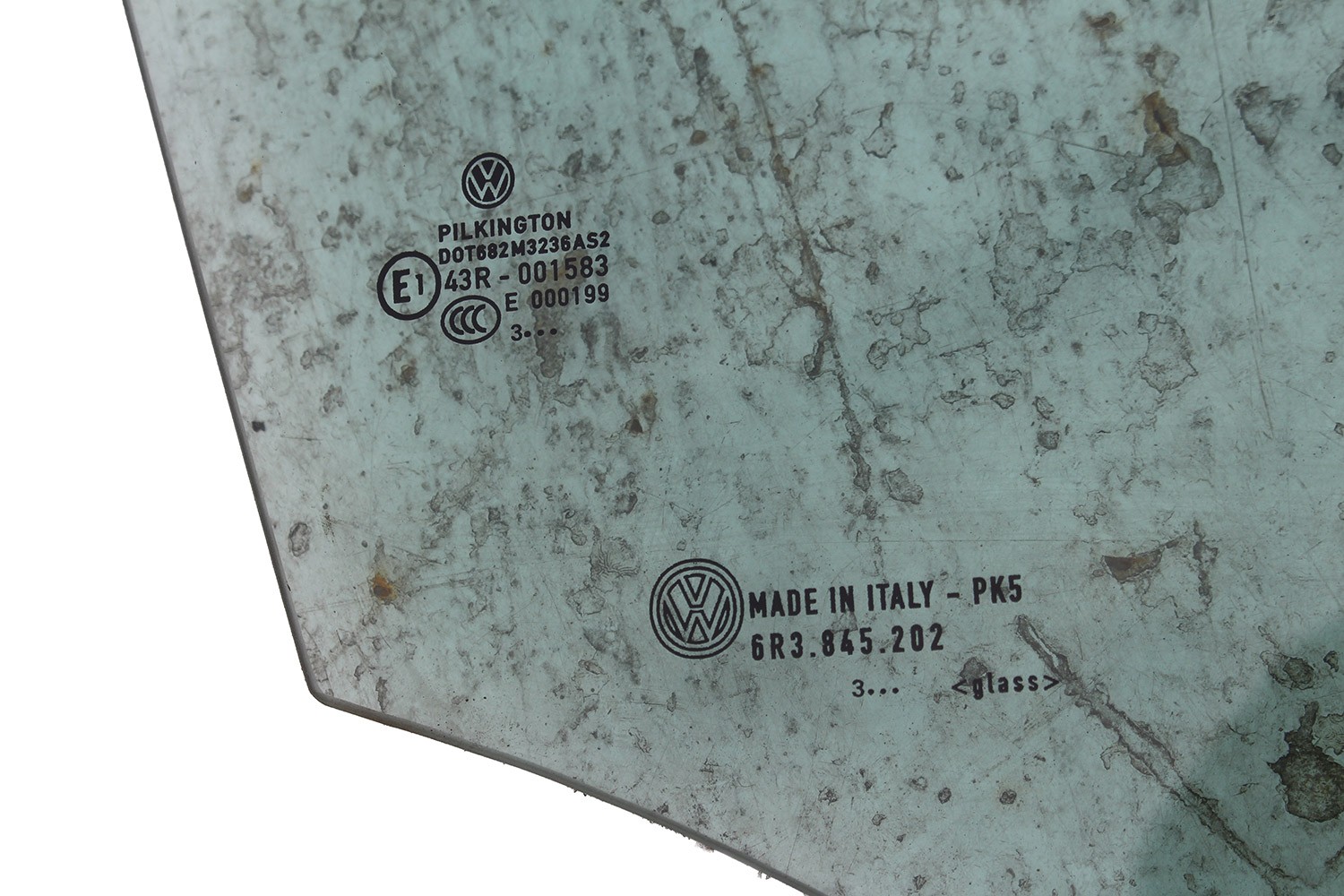 VW POLO SZYBA DRZWI PRAWE 6R3845202 prawa przód przednia 6R3 845 202 pasażera rok 2013 E1 AS2 zielony wersja 3-drzwiowa 6R 6C