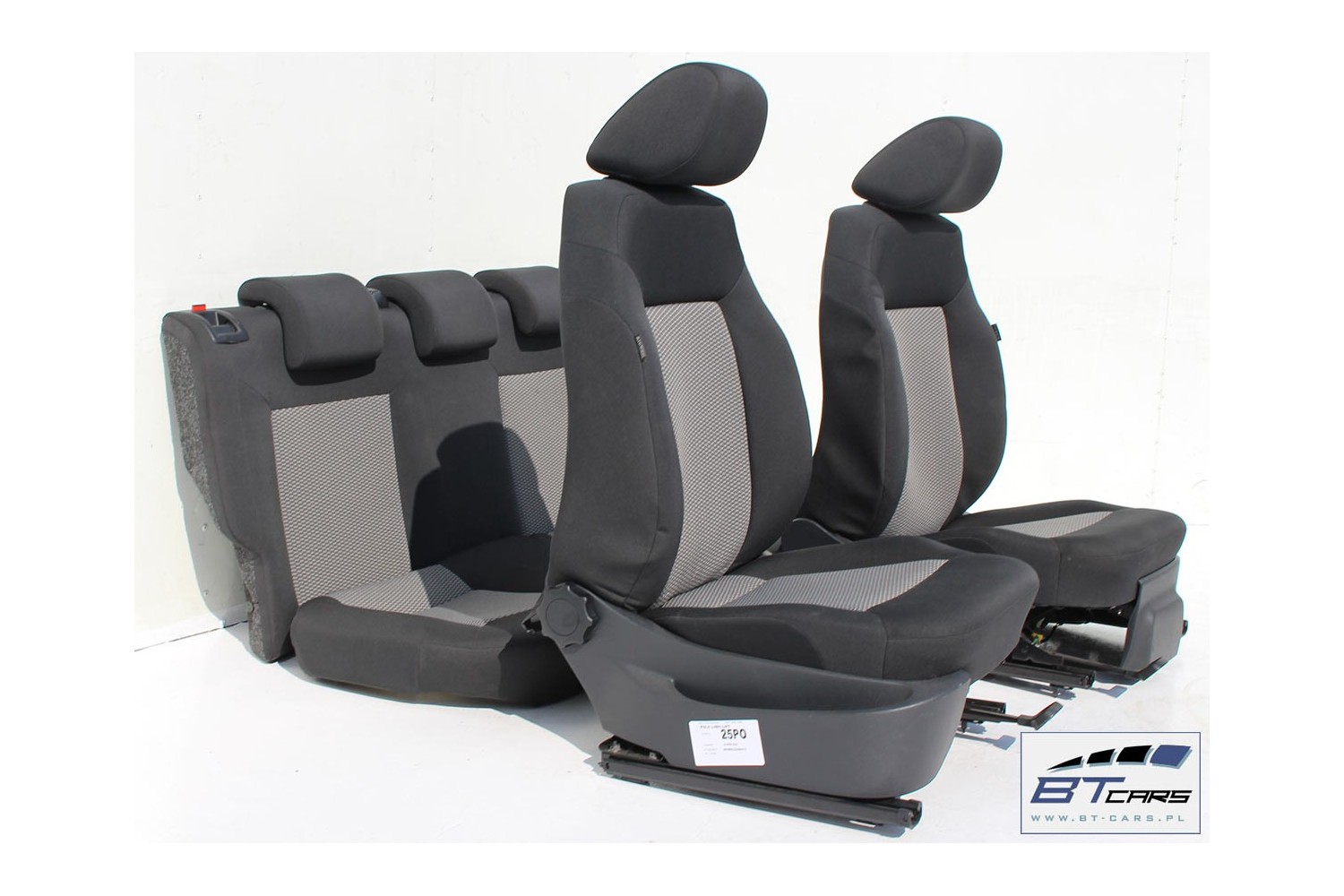 VW POLO FOTELE KOMPLET FOTELI siedzeń siedzenia tapicerka 6R 6R4 6R0 5-drzwiowy welur kolor czarno-szary 6C