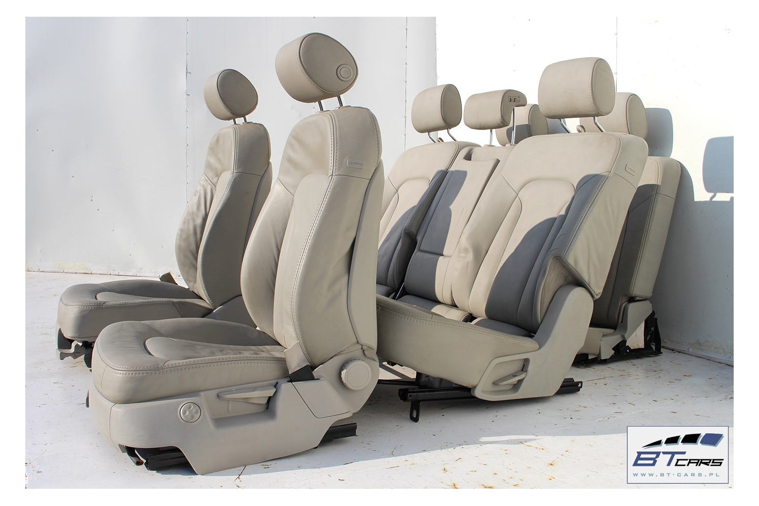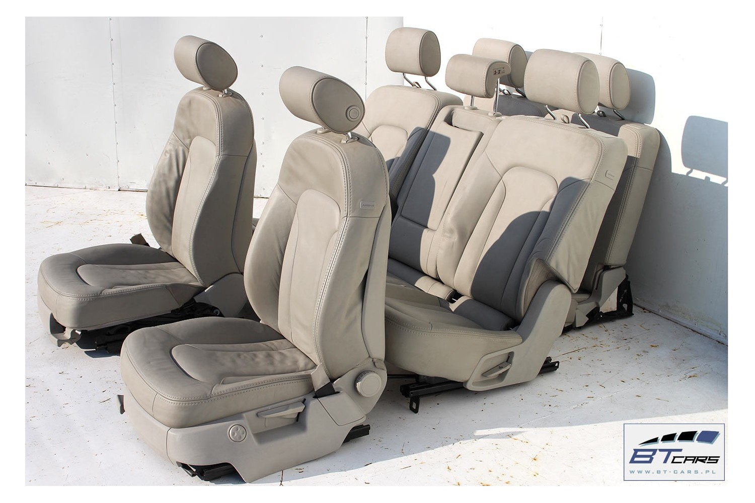 AUDI Q7 4L FOTELE KOMPLET FOTELI siedzeń siedzenia fotel tapicerka wersja 7-osobowa skóra kolor szary beżowy 4L