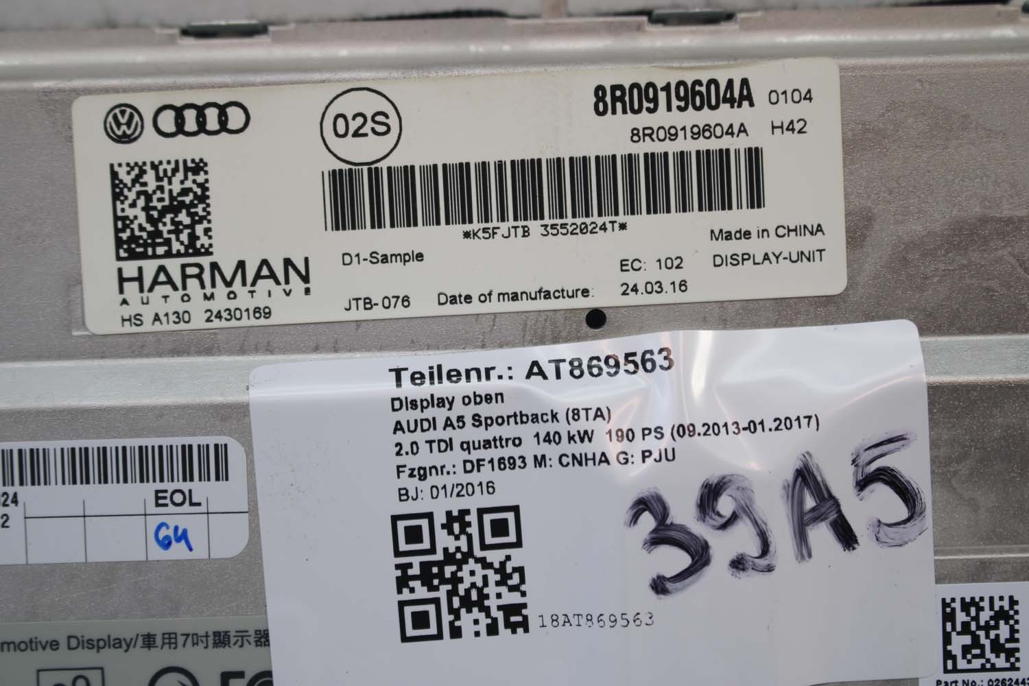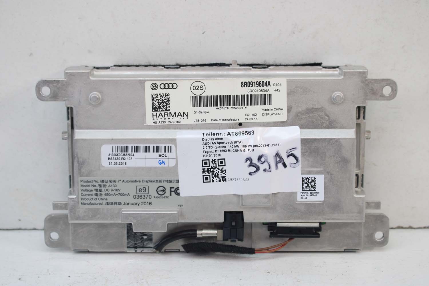 AUDI A4 A5 Q5 A6 Q7 MONITOR LCD MMI 8R0919604A 8R0 919 604 ekran wyświetlacz 8R0919604 8F0919604 4F0919604 8R0919604A 8R0919604