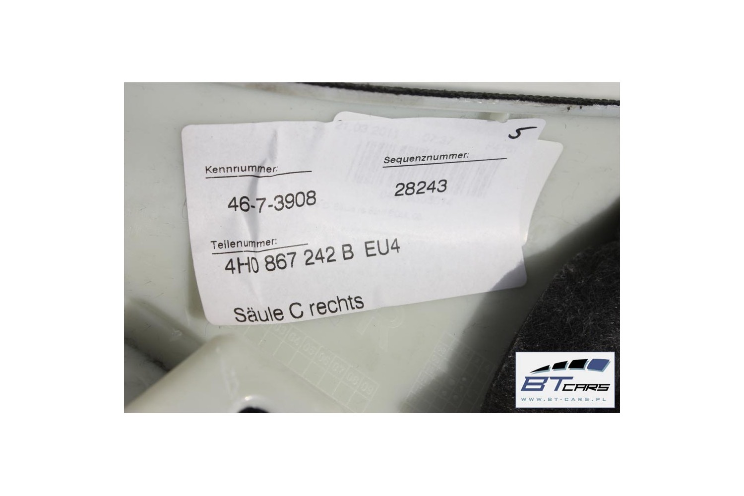 AUDI A8 SŁUPEK C PODSUFITKI TAPICERKA 4H0867241B 4H0867242B poszycie górne 4H D4 4H0 867 241 B EU4 czerń 4H0867241D 4H0867242D