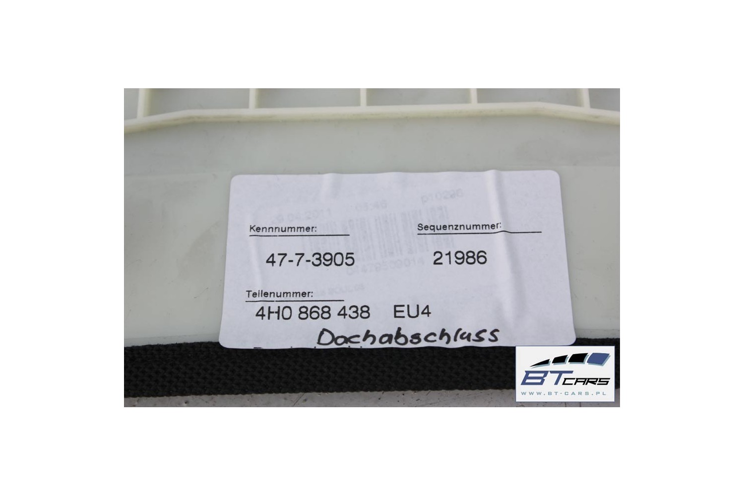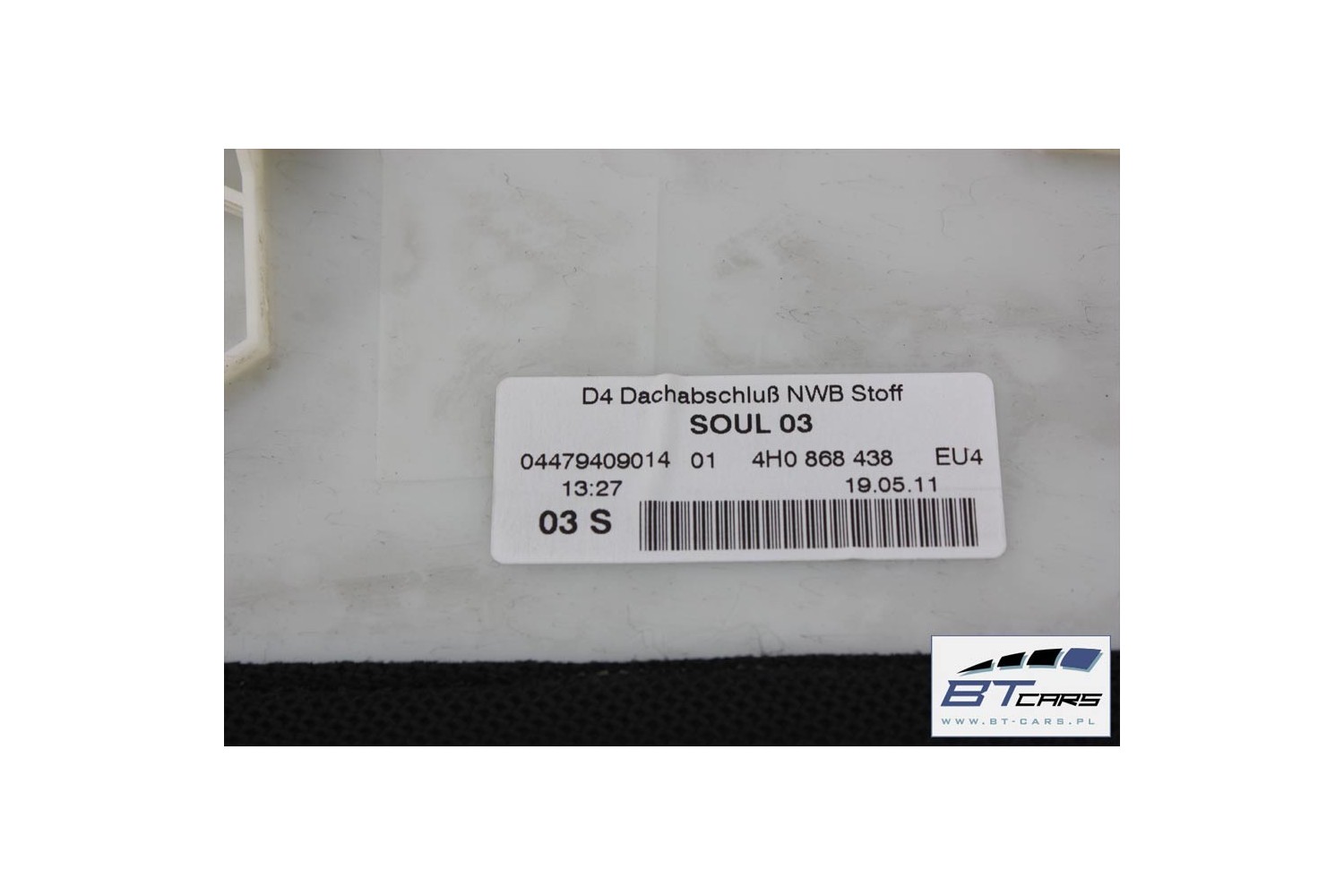 AUDI A8 SŁUPEK WYKONCZENIE PODSUFITKI 4H0868438 TAPICERKA poszycie górne D4 4H0 868 438 EU4 czerń 4H0868438 4H0868438 4H0868438