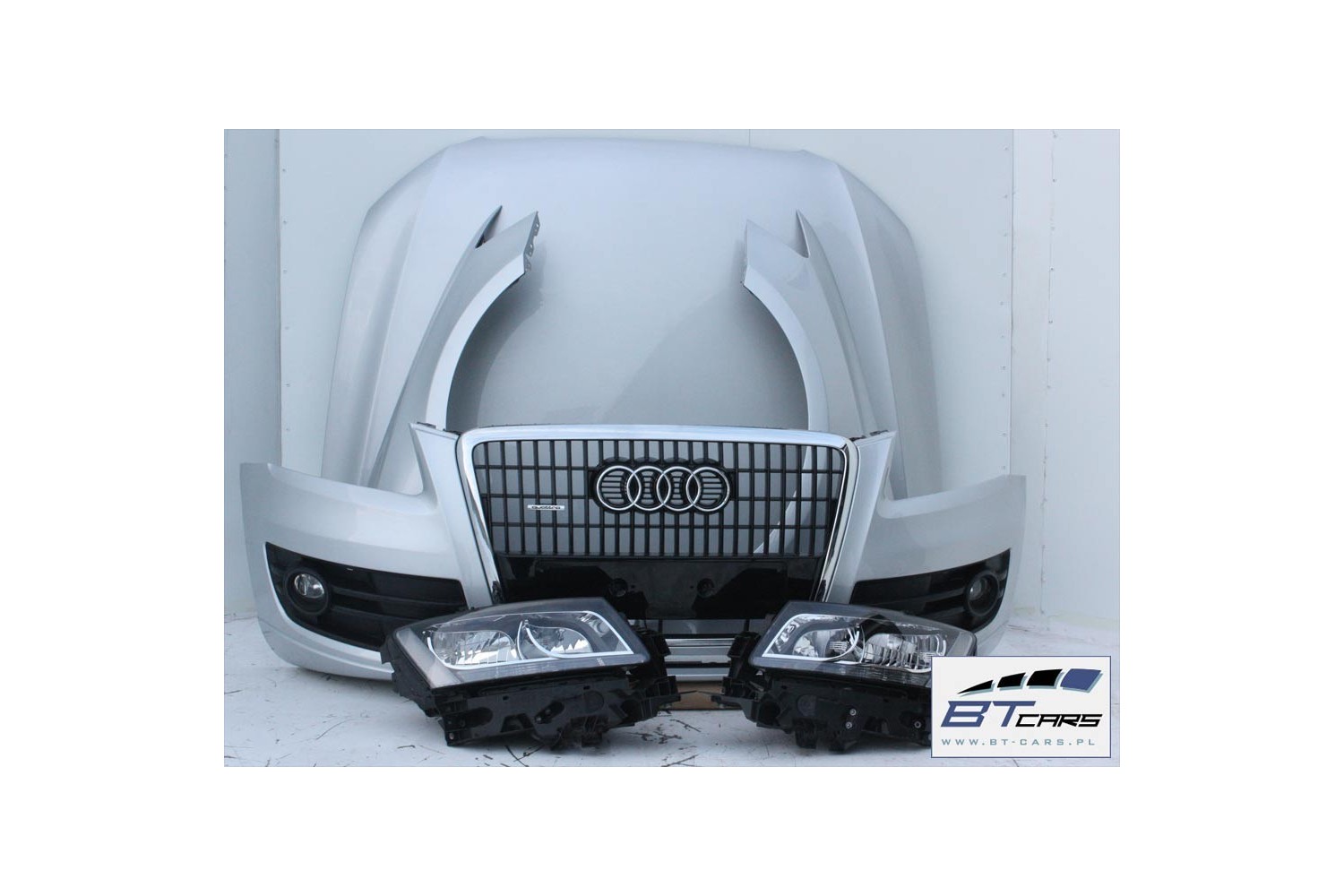 AUDI Q5 KOMPLETNY PRZÓD maska błotniki zderzak pas przedni lampy wzmocnienie błotnik lampa 8R Kolor srebrny 8R0823029 8R0821105