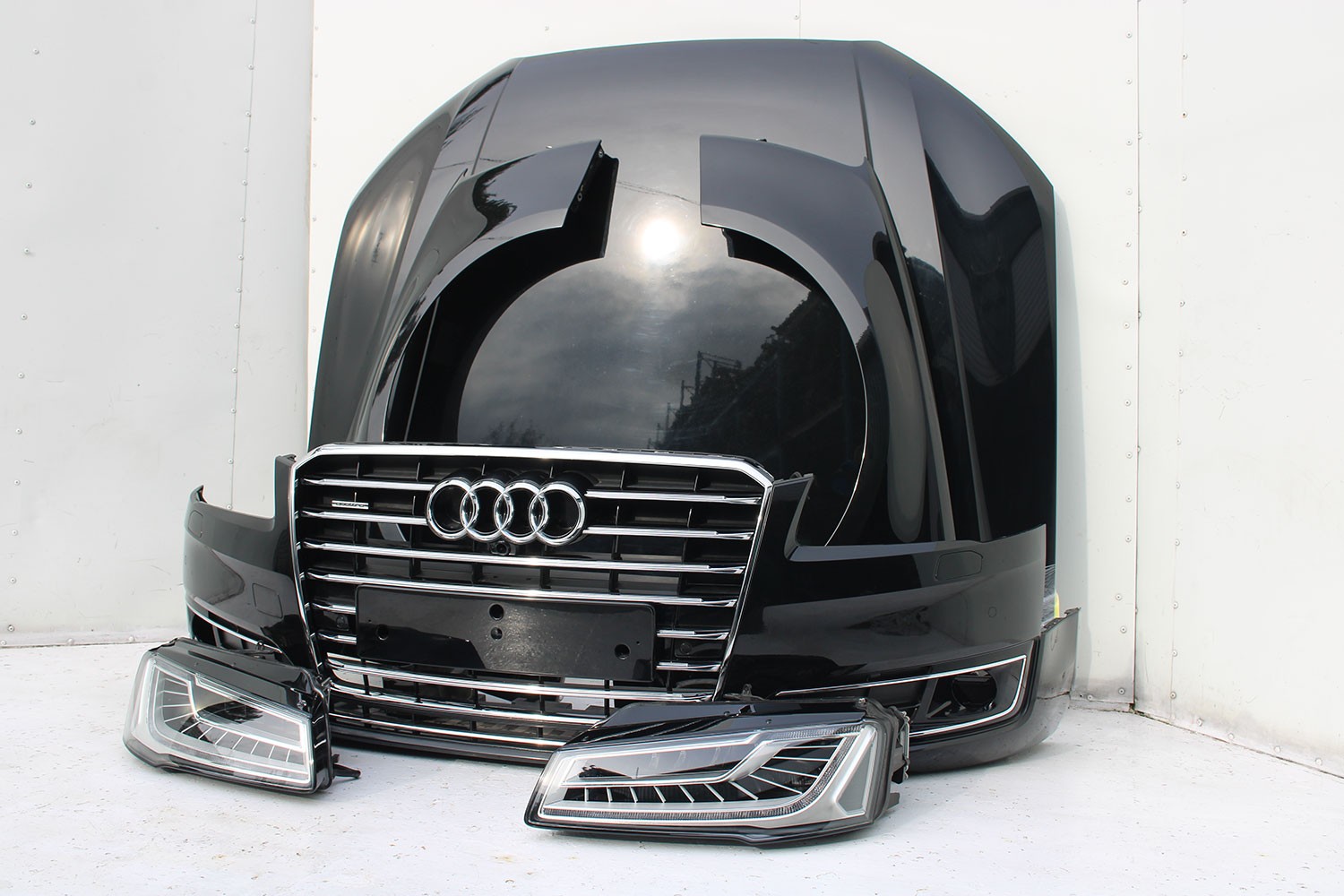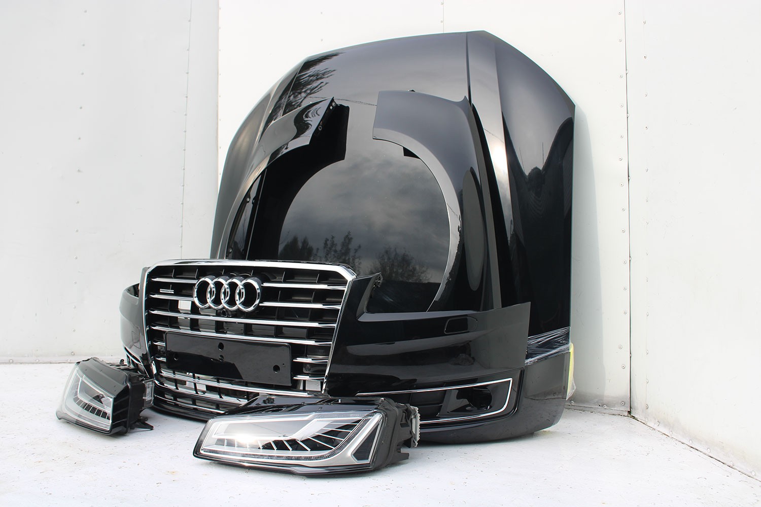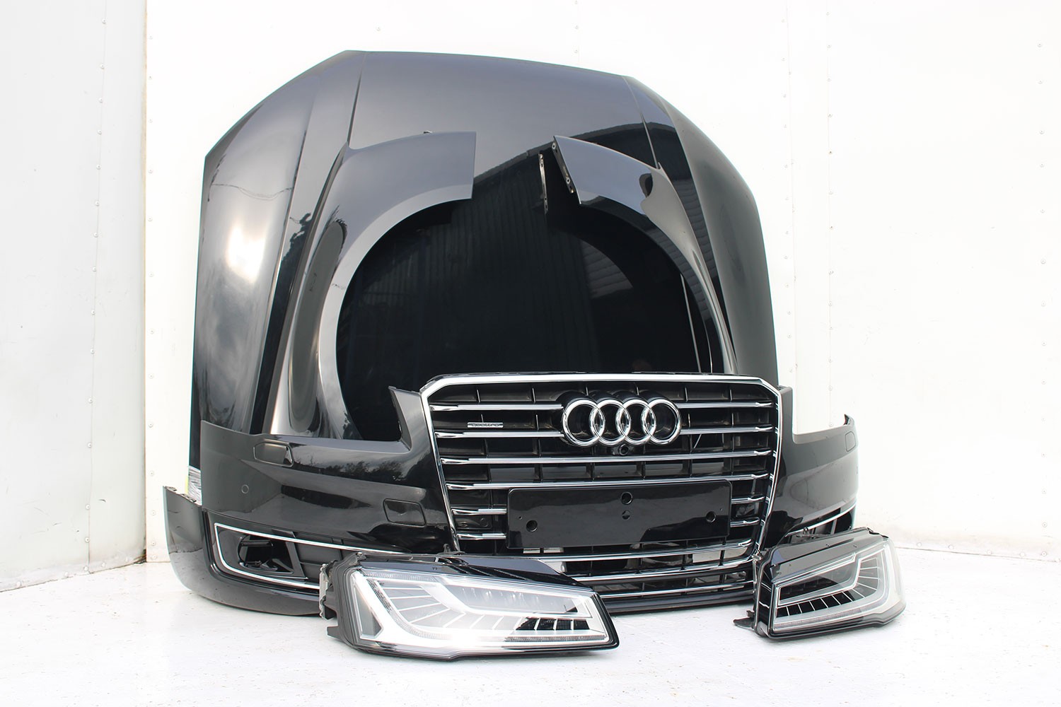 AUDI A8 4H LIFT PRZÓD Matrix maska błotniki zderzak + TYŁ klapa lampy + DRZWI lewa prawa strona FL 0E0E LY9T czarny PAKIET