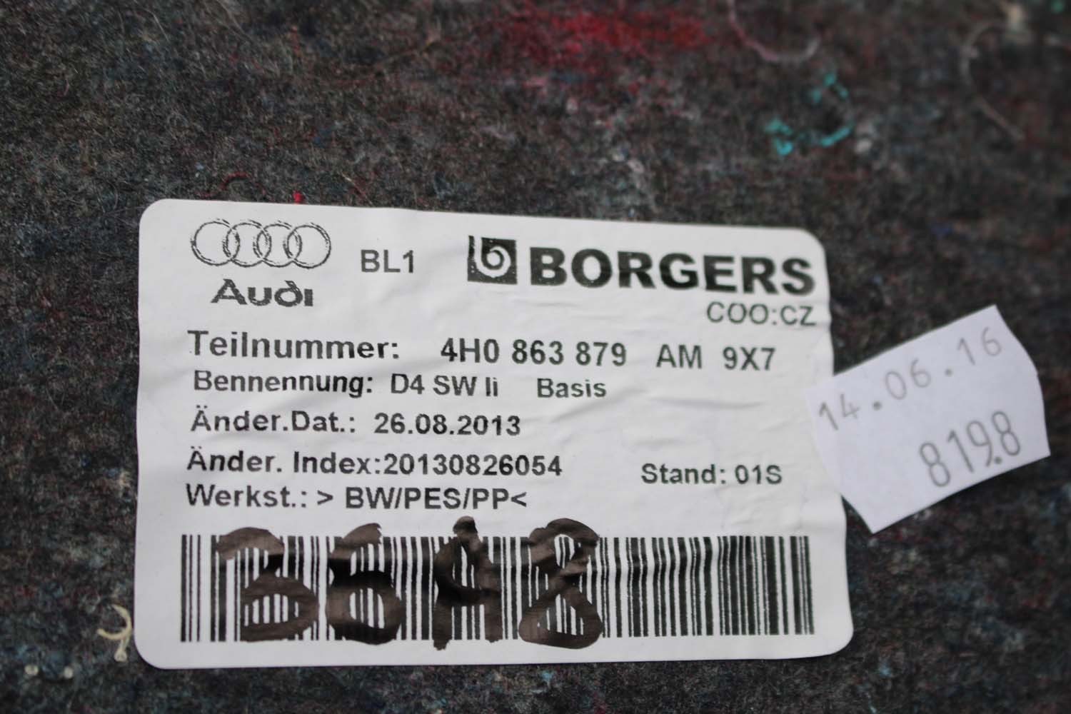 AUDI A8 BOCZEK DYWAN BAGAŻNIKA TAPICERKA 4H0863879AM 4H0863880AA 4H0863471 4H0863463G 4H D4 boczki bagażnik tapicerka 4H0863463P