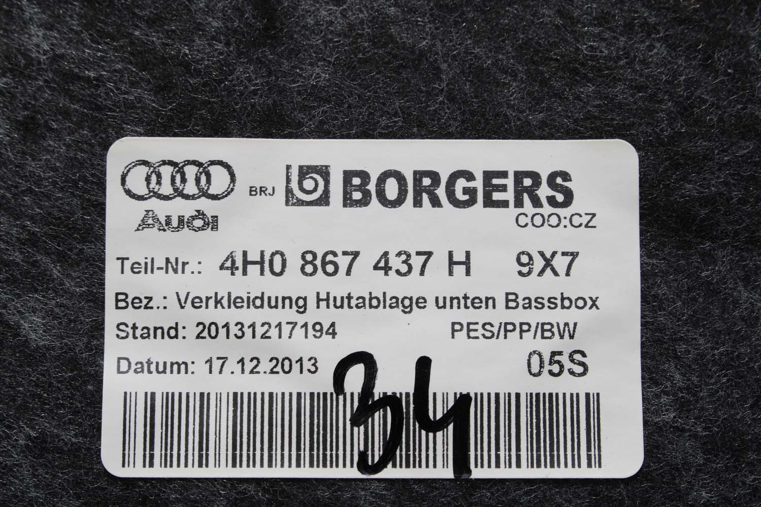 AUDI A8 S8 TAPICERKA TYLNEJ ŚCIANY 4H0867437H 4H0 867 437 H 4H0867437H BAGAŻNIKA 9X7 - czarny (soul) 4D D4 4H0867437H 4H0867437H