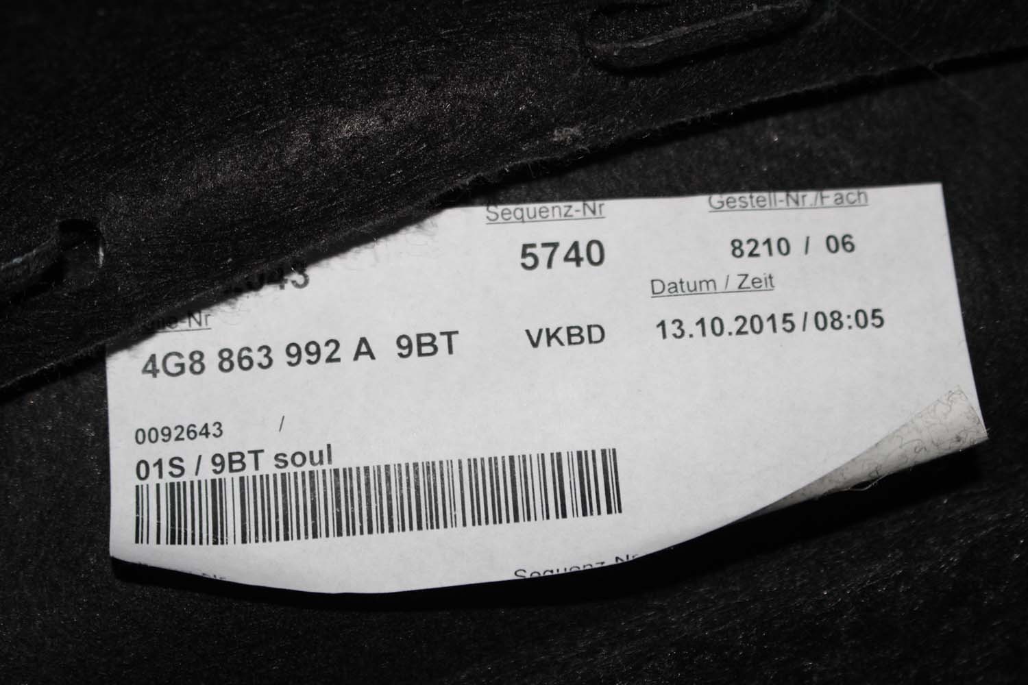 696 320 015 508 876 777 514 311 003 48 385 10 78Boczek tył wraz z dywanem bagażnika i wykończeniami