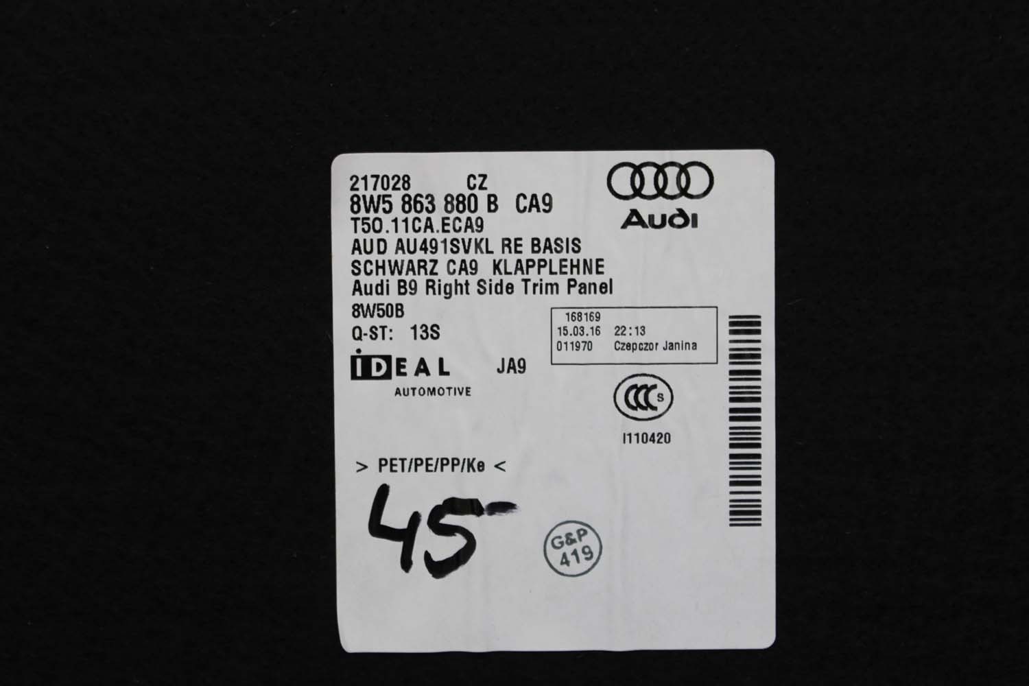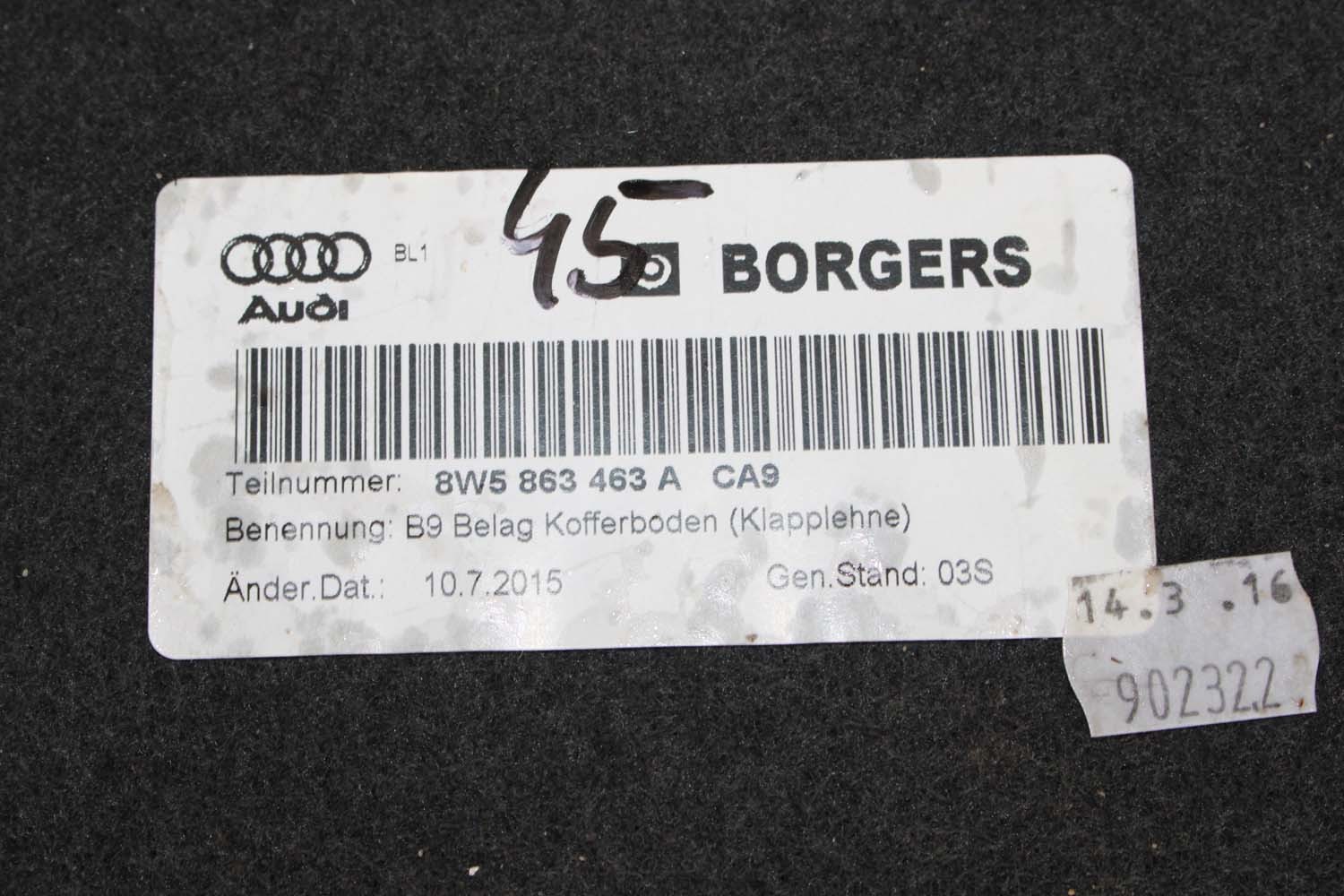AUDI A4 B9 SEDAN BOCZEK + PAS + DYWAN BAGAŻNIKA 8W5863879F 8W5863880C 8W5863471 8W5863463A boczki bagażnik tapicerka 8W B9