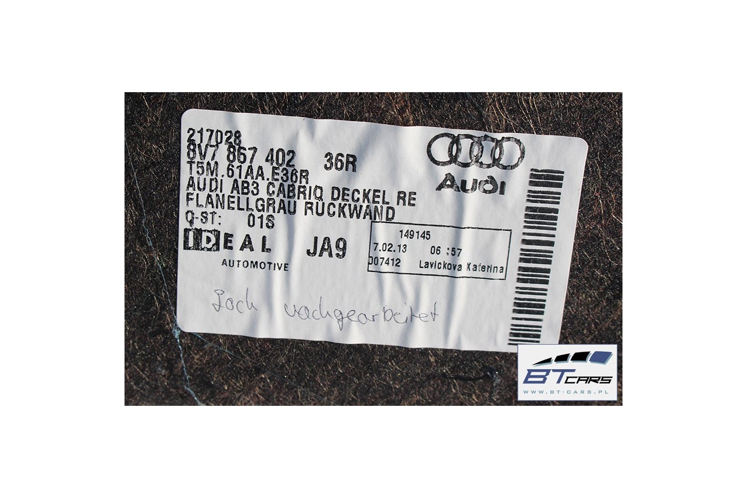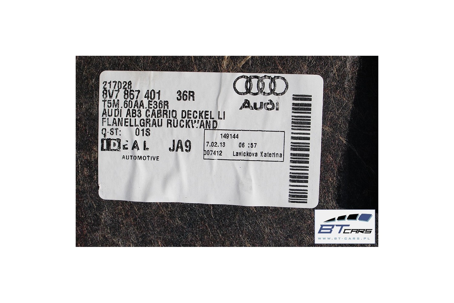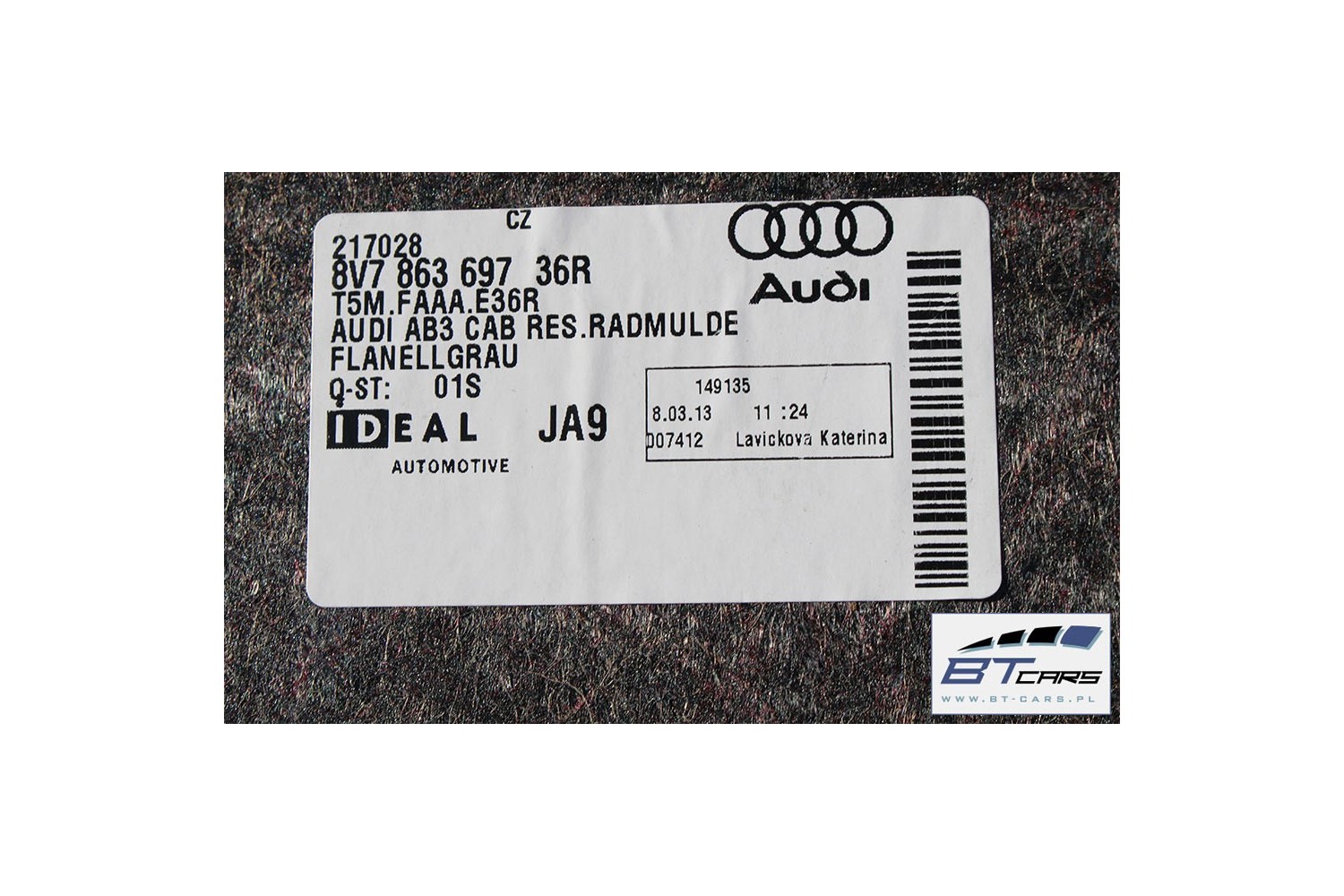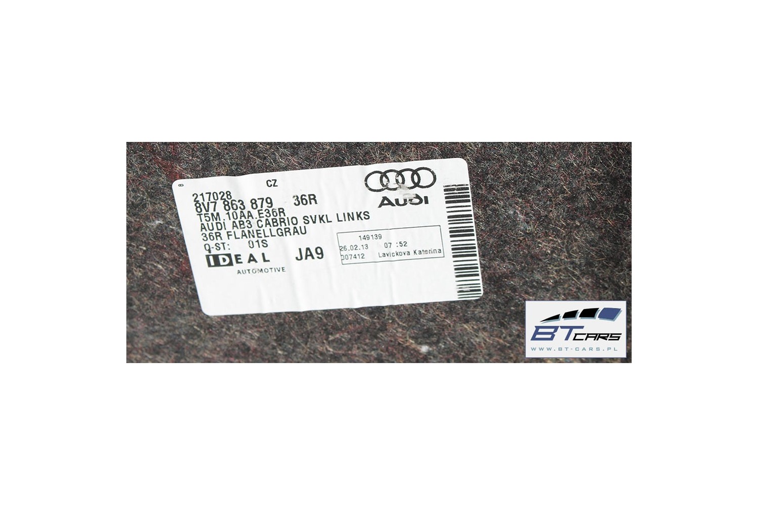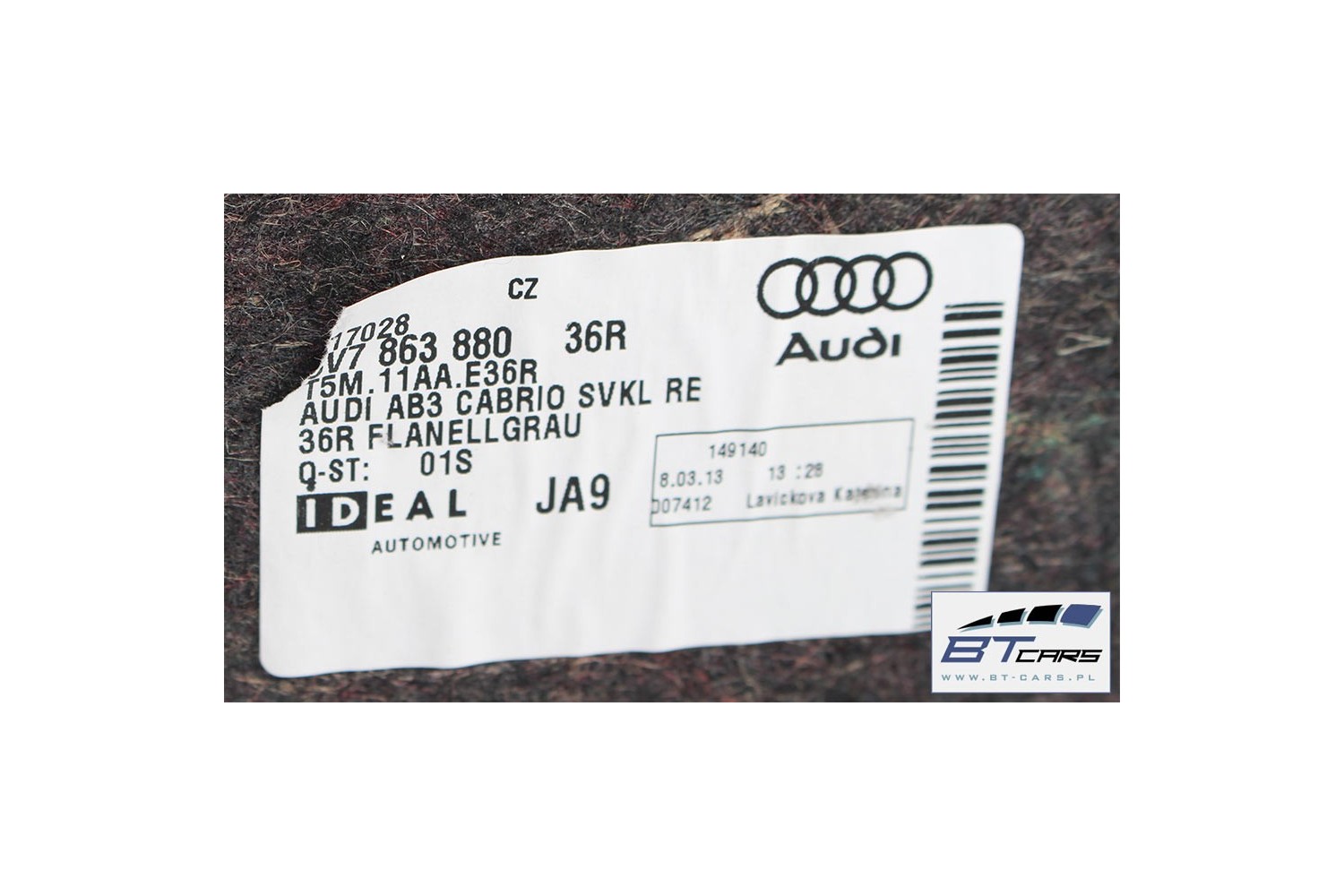 AUDI A3 CABRIO BOCZEK + DYWAN BAGAŻNIKA 8V7863880 8V7863697 8V7863697 8V7867401 8V7864407 8V7863471 8V boczki bagażnik pas 8V7