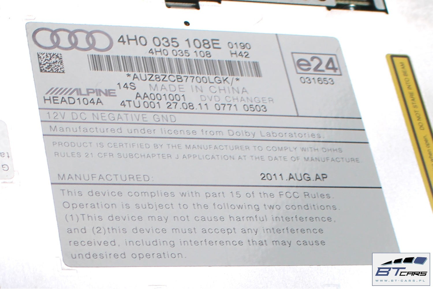 AUDI A6 A7 A8 ZMIENIARKA PŁYT DVD 4H0035108E 4H0035108 4H0035108E 4H0035108 4H0035108E 4H0035108 4H0035108E 4H0035108 VW TOUAREG